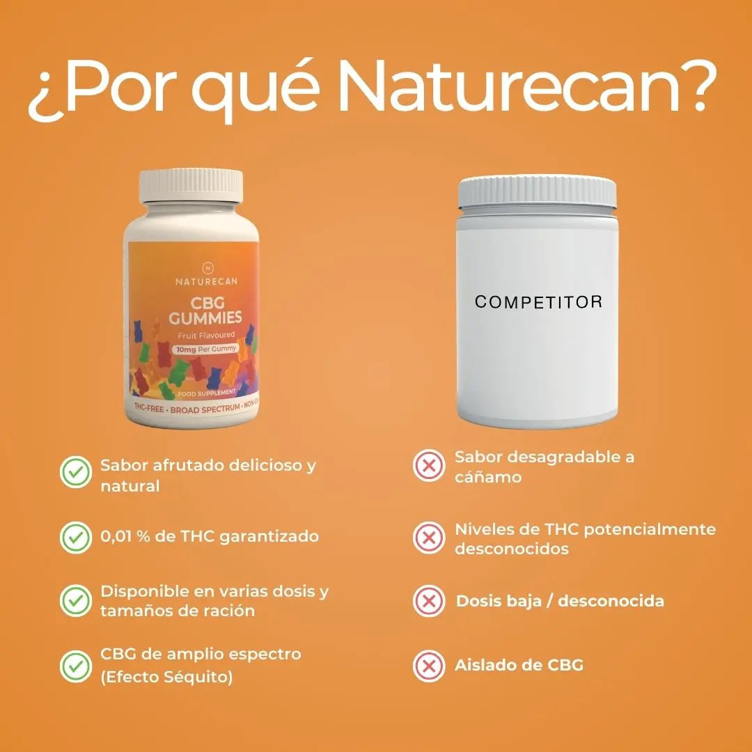 Todos los productos Naturecan se someten a rigurosas pruebas de terceros para asegurar pureza, seguridad y consistencia. Nuestras gomitas de CBG se elaboran usando tecnología de extracción líder en la industria y se fabrican bajo estrictos estándares de calidad, asegurando que recibas un producto limpio, seguro y efectivo.