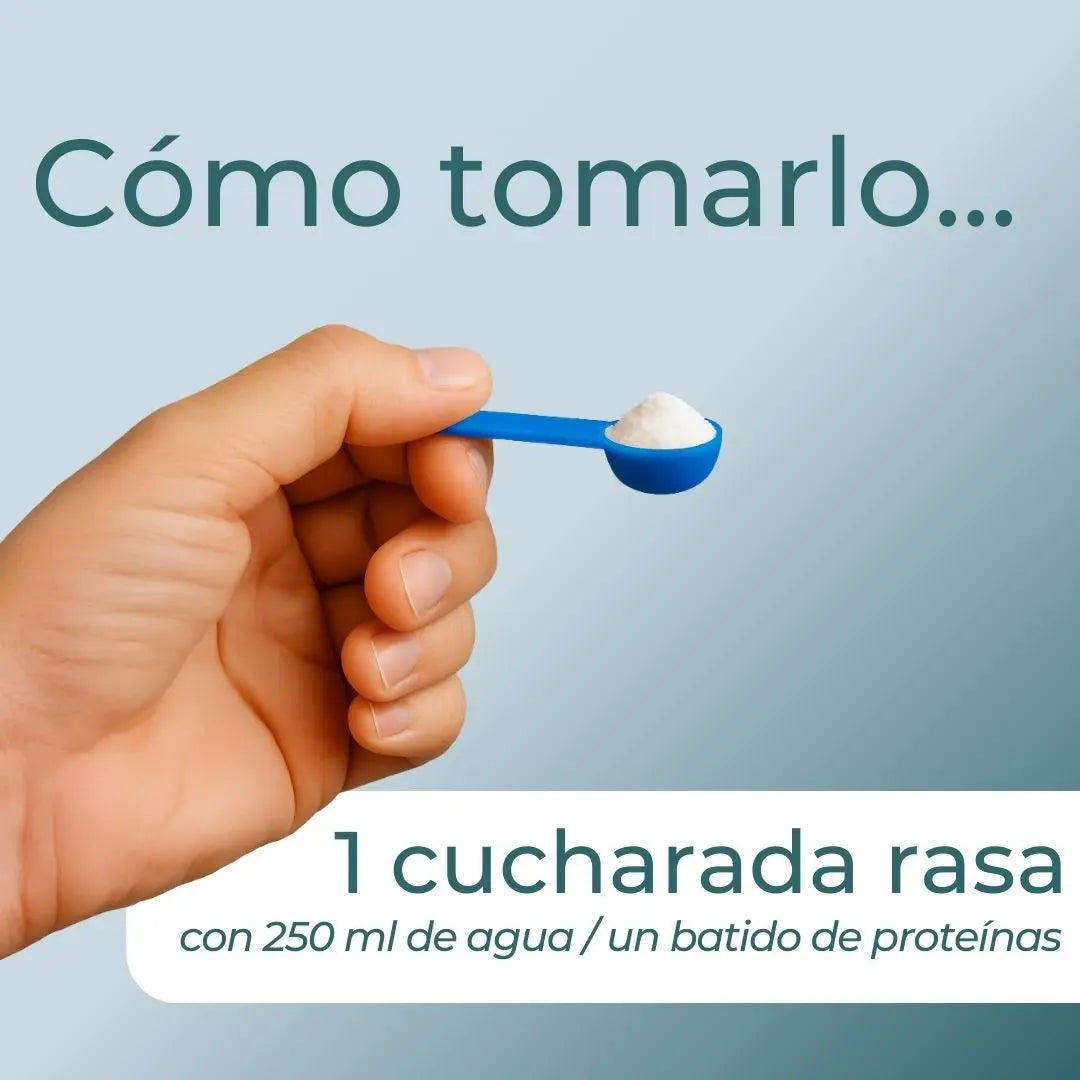 Mezcla 1 cucharada colmada (2,6 g) de nuestro Magnesio 3 en 1 en agua, un batido de proteínas o un smoothie. Tómalo diariamente para obtener los mejores resultados.